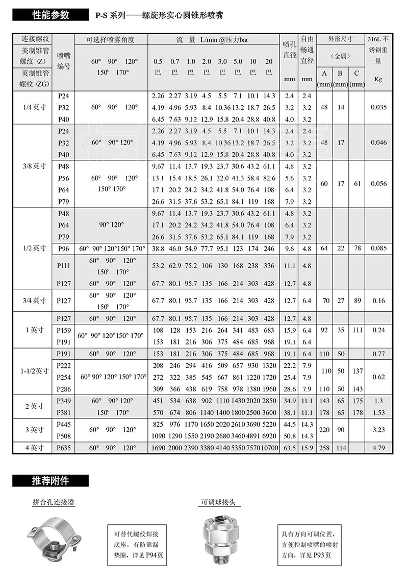 1. 螺旋實心錐噴嘴-P/S螺旋實心錐噴嘴-P/S螺旋實心錐噴嘴-P/S